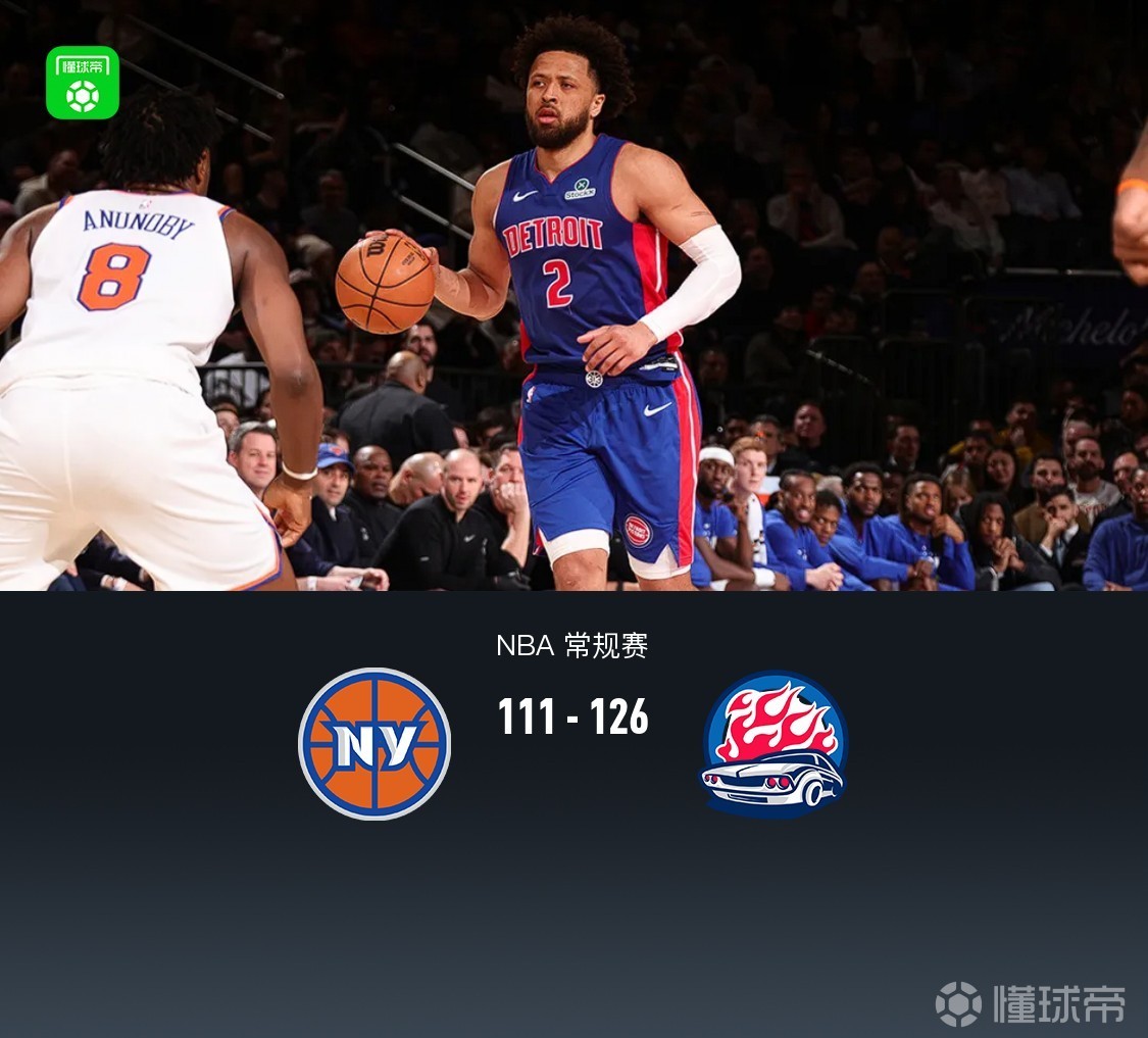 北京时间2月20日NBA 常规赛,纽约尼克斯对阵底特律活塞。上半场活塞依靠坎宁安出色发挥23分带队取得两位数领先,半场尼克斯48-58活塞,下半场尼克斯多次反扑无果,最终活塞126-111尼克斯。