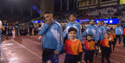 双方球员步入球场,比赛即将打响