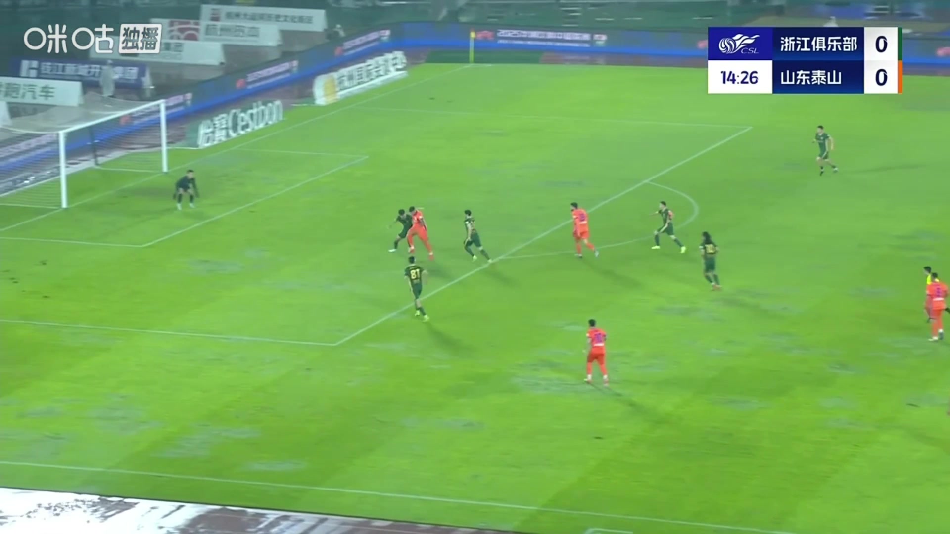 浙江门将神级发挥泽卡禁区内面对半空门推射被赵博神扑