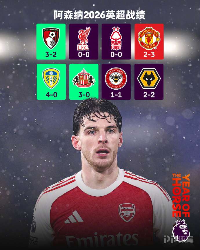 阿森纳2026年在英超获得13分 比伯恩茅斯和布伦特福德都少