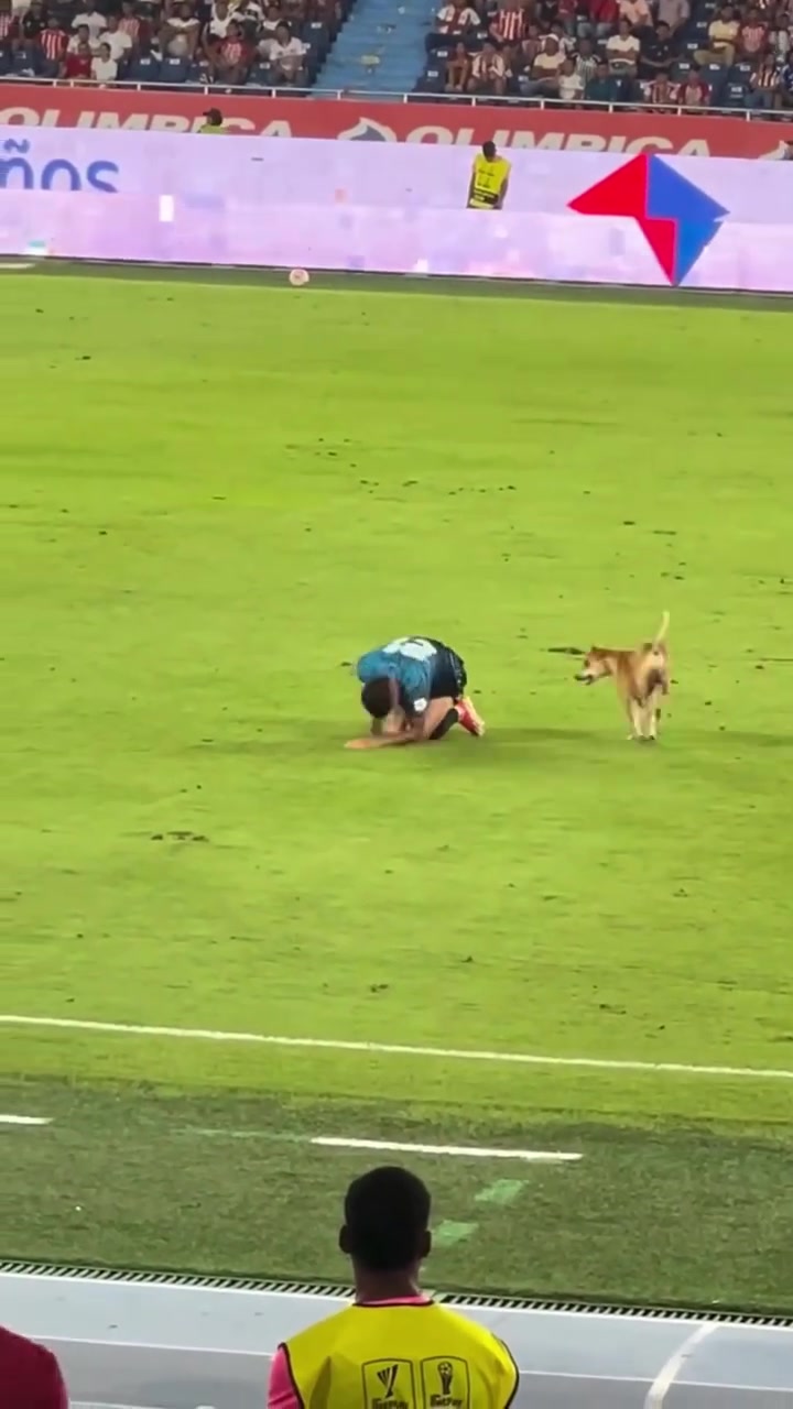 狗狗进场模仿球员受伤